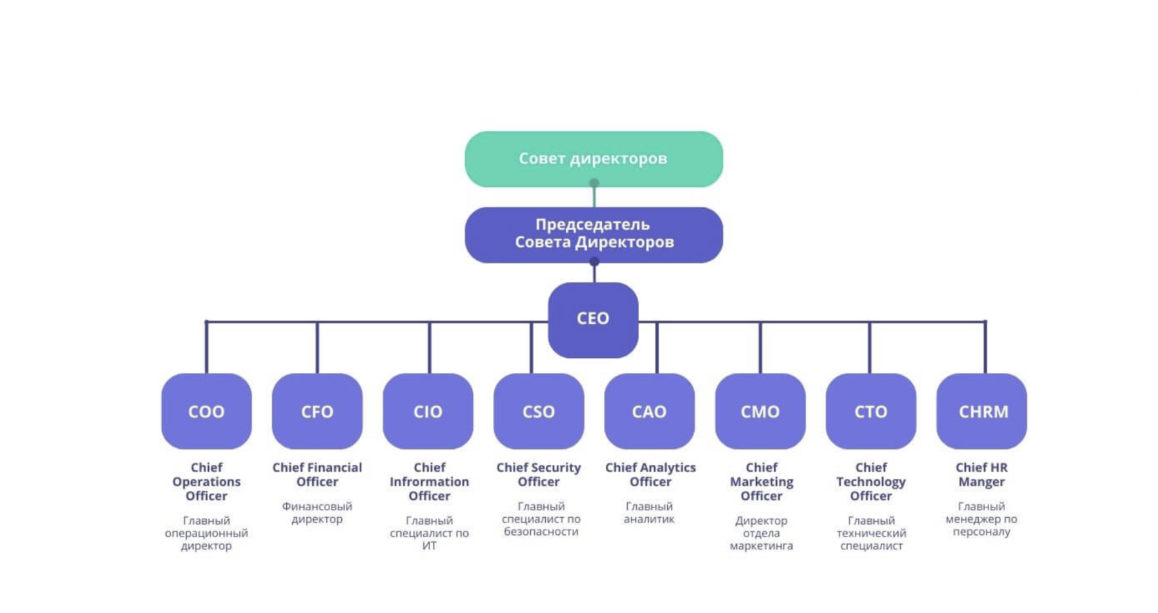 - COO (Chief Operating Officer) - отвечает за повседневные операции и контроль над производственными процессами.